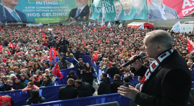 Cumhurbaşkanı Erdoğan, “Şunu lütfen hiçbir zaman unutmayın. Muhalefetin sırtında yumurta küfesi yok ama bizim var. Onlar meydanlarda atıp tutmayı, sonra da 'hatırlamıyorum' diyerek verdikleri sözlerin üstüne yatmayı çok sever. Ankara'dan İstanbul'a kadar yönettikleri belediyelerde hep bunu yaptılar. Vatandaşın aklını çelmek, oyunu almak için bol keseden vaat dağıttılar. Ama göreve gelince verdikleri sözlerin, 'yapacağız' dedikleri projelerin neredeyse hiçbirini hayata geçirmediler” diye konuştu.