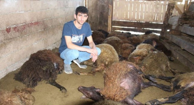 Oltu Şehitler Mahallesi’nde Akın Barış Varol (18) koyunları otlatmak için sabah 06.00 sularında ahırına gidince korkunç manzarayla karşılaştı. Ahır kapısının önünde yerde yatan koyunları gören Varol, içeri girdiğinde koyunlarının yarısına yakınının telef olduğunu gördü. Akın Barış Varol, koyunların sahibi olan amcası Erol Varol’a durumu haber etti.