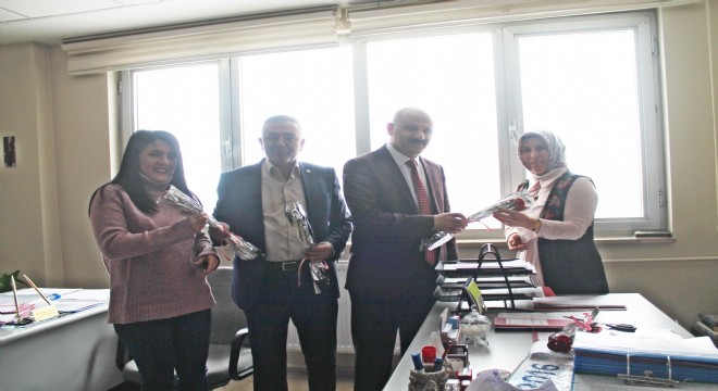 Aile, Çalışma ve Sosyal Hizmetler İl Müdürlüğünde AÇSH İl Müdür Yardımcısı İsmet Erdal ve Hak İş Konfederasyonuna bağlı Öz Büro İş Sendikası İl Temsilcisi Yılmaz Diler tarafından 8 Mart Dünya Kadınlar Günü nedeniyle kurumda görevli kadınlar, görevleri başında ziyaret edilerek, karanfil dağıtıldı.