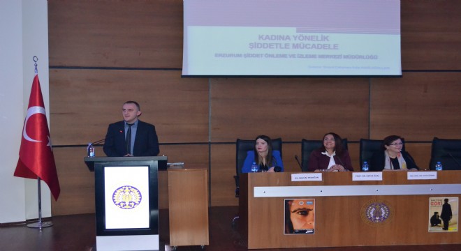 Panele konuşmacı olarak katılan Sağlık Bilimleri Fakültesi Öğretim üyesi Yrd. Doç. Dr. Hava Özkan, Kadına Yönelik Şiddetin Kadın Sağlığına Etkisi, Erzurum Barosu Avukatı Begüm Erdoğan, Kadına Yönelik Şiddet ve Hukuki Durum, Şiddet Önleme ve İzleme Merkezinde görevli Sosyal Çalışmacı Edip Kahiloğulları, şiddet önleme ve izleme merkezi işleyişine genel bakış konularında sunum yaptılar.