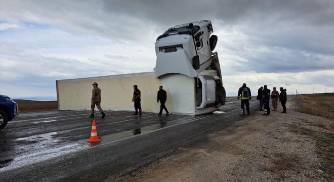 Alınan bilgilere göre kaza, öğle saatlerinde Adilcevaz-Erciş karayolu üzerinde meydana geldi. Adilcevaz’dan Erciş istikametine gitmekte olan Halil Batmış yönetimindeki 47 NL 666 plakalı tır, yolun kaygan olması nedeniyle kontrolden çıkarak yan yattı. Sürücünün hafif yaralandığı kazada jandarma ekipleri güvenlik önlemi aldı.