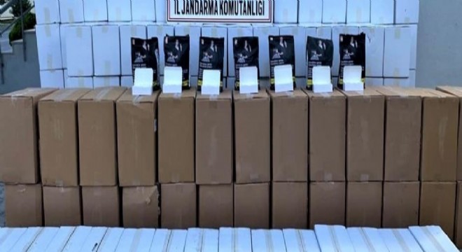 Erzincan’da jandarma ekiplerince yapılan çalışmalar sonucu ağaçlık alan içerisine gizlenmiş ve 27 koli içerisinde toplam 270 kilogram tütün, 147 koli içerisinde toplam 1 milyon 470 bin adet boş makaron ele geçirildi.