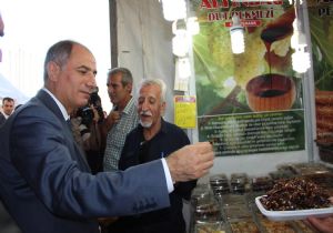 Bakan Ala’ya Oltu standında Oltu Belediye Başkanı İbrahim Ziyrek tarafından Oltu taşından yapılan plaket hediye edildi.