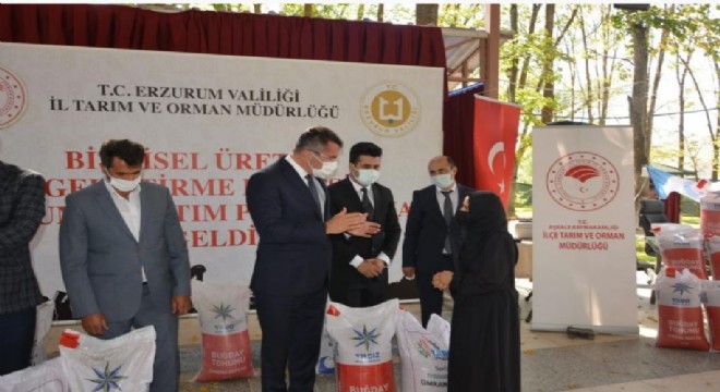 İl Tarım ve Orman Müdürlüğü’nün 'Bitkisel Üretimi Destekleme Projesi' kapsamında çiftçilere dağıtılması planlanan bitki tohumları Aşkale de düzenlenen programda dağıtıldı.
