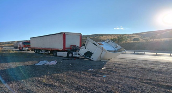Aşkale ilçesinde meydana gelen trafik kazasında yabancı plakalı tır ikiye ayrıldı. Kazada sürücü yaralı olarak kurtuldu.
