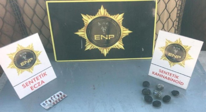 Erzurum Emniyet Müdürlüğünce gerçekleştirilen uygulamada 213.33 gram sentetik kannabinoid hammaddesi ve 11 adet uyuşturucu hap ele geçirildi.