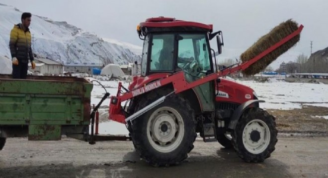 Aşkale ilçesinde hidrolik işleriyle uğraşan esnaf, çiftçilere büyük kolaylık sağlayacak balya yükleme aparatı yaptı.