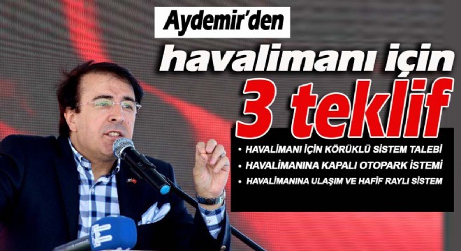 Havalimanına ulaşımda hafif raylı sistem tesis edilmesine gerek bulunduğunu ifade eden Milletvekili Aydemir, ‘Erzurum Havalimanı için diğer acil bir ihtiyaç da şehir ile Havalimanı arasında hafif raylı sistemin kurulmasıdır. Fazla maliyet gerektirmeyen ama olmazsa olmaz nitelikte bu proje için Bakanlığınız ile Büyükşehir Başkanlığımızın vakit geçirmeden bir çalışma yapmasını talep ediyoruz.