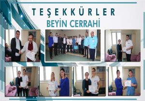 Konuşmadan sonra, Kliniklerinde göstermiş oldukları üstün gayretlerden ötürü Beyin Cerrahi Klinik şefi Doç. Dr. Hilmi Önder Okay, hemşire; Aynur Haznedar Demirci, Gülzade Sedef Cebeci Zülküf Saraçoğlu, Osman Özdemir, İntizar Biçici, Nil Dabağ İspirli, Belkız Yıldırım, Nurcan Karataş Güler, Serpil Karakaplan’na teşekkür belgesi verilerek başarılarında devam dilendi.