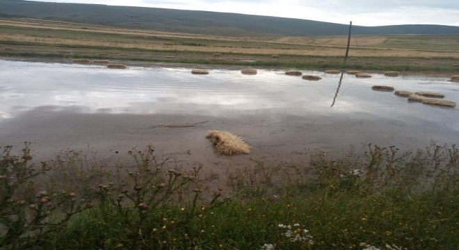 Ardahan'ın Çıldır ilçesinde yağan sağanak yağmur sonrasında balyalar sular içerisinde kaldı.