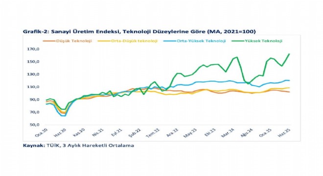 Bolat imalat sanayideki büyümeye ilişkin de bilgilendirmelerde bulunarak, "2025 yılı ikinci çeyreğinde imalat sanayi, 2022’nin ikinci çeyreğinden bu yana en yüksek artışı kaydederek yüzde 7,0 büyümüş ve GSYH büyümesine 1,1 puan katkı sağlamıştır. İmalat sanayindeki bu güçlü artışın temelinde yüksek teknoloji üretimindeki ivmelenme bulunmaktadır. Nitekim Nisan-Haziran döneminde yüksek teknoloji üretimi çeyreklik bazda yüzde 9,6, yıllık bazda ise yüzde 38,5 oranında artış göstermiştir. Bu performans ile yüksek teknoloji ihracatı yıllık bazda Temmuz ayında yüzde 71,7, Ağustos ayında yüzde 42,3 oranında artış kaydetmiştir" ifadelerine yer verdi.