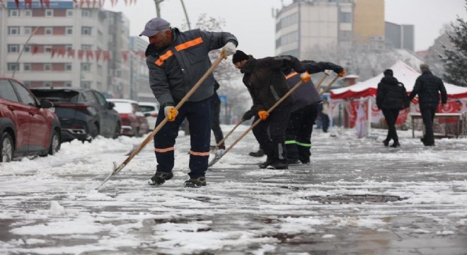 Büyükşehir Belediyesi ekipleri, kent merkezinde karla mücadele çalışmalarını gün boyunca sürdürdü.