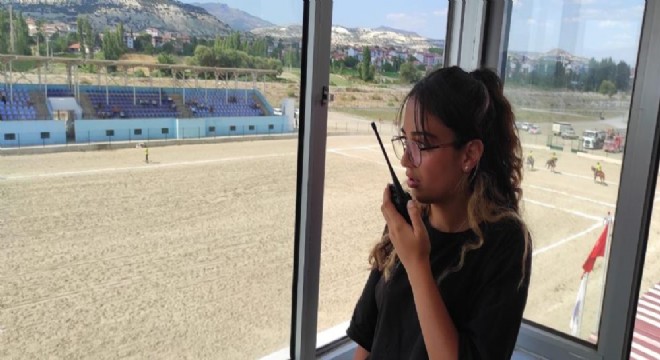 Manisa'nın Selendi ilçesinde oynanan Atlı Cirit çeyrek final müsabakalarında Erzurum Atatürk Üniversitesi Eğitim Fakültesi öğrencisi Ebru Emine Toraman tek kadın hakem olarak dikkat çekiyor.