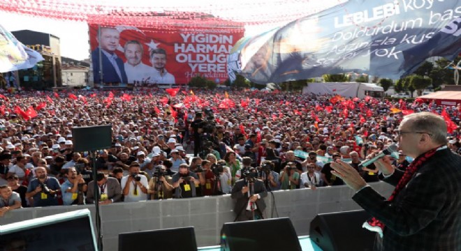 Cumhurbaşkanı Erdoğan, "Karşımdaki coşku var olduğu müddetçe, bu heyecan sürdüğü müddetçe, sizin hayır dualarınız yanımızda olduğu müddetçe bize durmak yok, bize duraklamak yok, bize rehavet yok" dedi.