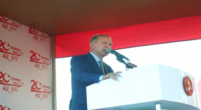 Cumhurbaşkanı Erdoğan, Kıbrıs Türklerinin evlerinden, yurtlarından, ailelerinden, hayatlarından zorla koparıldığını belirterek, şöyle konuştu: "Burada bu güzel topraklarda korkunç katliamlara şahitlik ettik. Gözünü kin ve nefret bürümüş hastalıklı bir zihniyetin neler yapabileceğini hem de çok acı bir şekilde bu topraklarda gördük. Her şey yapıldı, her türlü zulüm işlendi, ama Türk Milleti zalimlere asla boyun eğmedi. Kıbrıs Türkü'nün direniş azmini ve özgür yaşama iradesini kıramadılar. Türkiye'nin, tüm riskleri göze alarak Kıbrıs Türk halkının yanında olacağını hesap edemediler. Türk Ordusu, 49 yıl önce mücahit kardeşleriyle omuz omuza çarpışarak yazdığı destanla Kıbrıs Adası'na barış, istikrar, demokrasi ve huzur getirdi. Yok etmek istedikleri Kıbrıs Türkleri, bugün Kuzey Kıbrıs Türk Cumhuriyeti çatısı altında, kendi bayraklarının gölgesinde güvenle yaşıyor. Türkiye'nin de sarsılmaz desteğiyle Kıbrıs Türk halkı geleceğine daha bir umutla bakıyor."