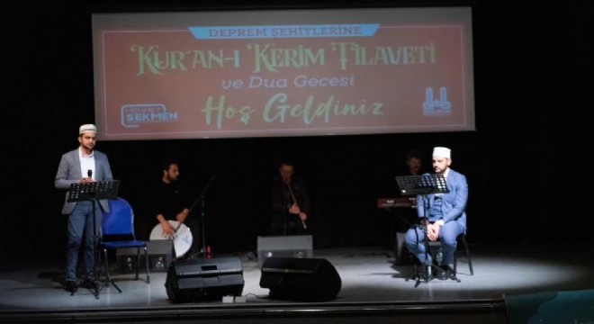 Erzurum Büyükşehir Belediyesi Kültür ve Sosyal İşler Daire Başkanlığı tarafından organize edilen programda, ‘Asrın Felaketinde’ hayatını kaybeden deprem şehitleri için dua gecesi düzenlendi.