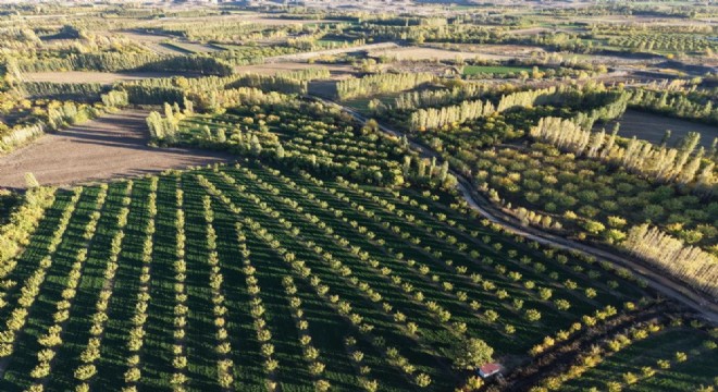 Ağrı Dağı'nın kuzey eteklerinde, Iğdır'ın Melekli beldesinde yer alan İrem Bağları, sonbaharın gelişiyle birlikte adeta renklerin dans ettiği bir tabloya dönüştü.