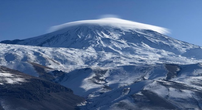 Sahip olduğu 5 bin 137 rakımla Avrupa’nın en yüksek noktası olan Ağrı Dağı, zirvesinde oluşan mercek bulutu ile görsel şölen oluşturdu.