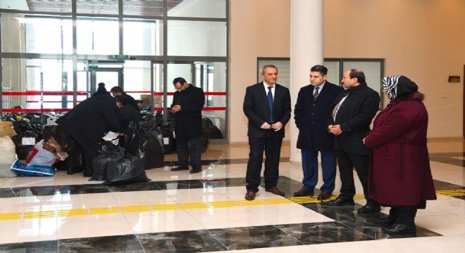 Rektörlük binasında Personellerden, öğrencilerden ve vatandaşlardan kısa sürede toplanan battaniye, çadır, çorap, bere, eldiven, atkı, polar, bebek bezi, mont, el feneri, pil, uyku tulumu, termal giysi, çamaşır, cep ısıtıcısı, ıslak mendil ve bebek bezi gibi malzemeler tasnif edilip, paketlenerek Erzurum AFAD Merkezine ulaştırılmak üzere araçlara yüklendi.