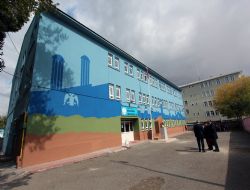 Aziziye ilçesindeki 17 derslikli Atatürk Ortaokulu’nun tüm dış cephesi boyandı ve ön cephesi tarihi eserlerin resmiyle süslendi.