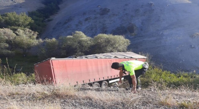Tercan ilçesinde meydana gelen trafik kazasında tır şarampole uçtu. Kzada yaralanan Sürücü tedavi altına alındı