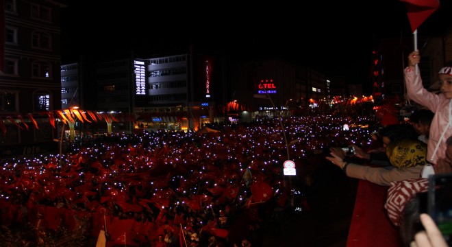 15 Temmuz 2016’daki hain darbe girişiminin 2’inci yıldönümünde 15 Temmuz Demokrasi ve Milli Birlik Günü etkinlikleri Erzurum’da devam ediyor. Vatandaşlar ellerinde Türk bayrakları ile geldikleri alanda dev ekranlarda Cumhurbaşkanı Recep Tayyip Erdoğan’ın İstanbul’da, 15 Temmuz Şehitler Köprüsünden verdiği mitingi canlı bağlantıyla izledi. Vatandaşlar yoğun yağmura rağmen 16 Temmuz sabahına kadar Cumhuriyet Caddesi’nde tutulacak olan demokrasi nöbetine katıldı.