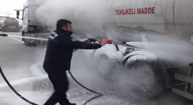 Balataları alev alan Akaryakıt yüklü tanker faciaya ramak kala söndürüldü.