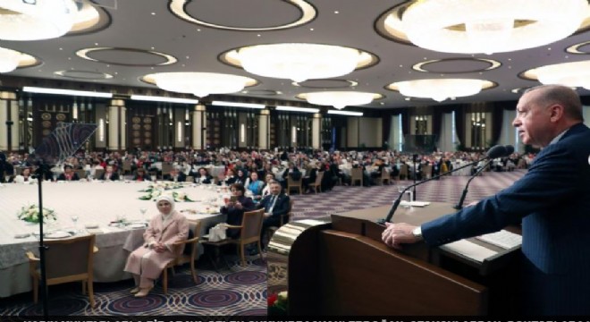 Konuşmasının büyük bölümünde kadınlara ilişkin yapılan çalışmalara ayıran Cumhurbaşkanı Erdoğan, “Bugünkü buluşmamızın ilave bir önemi ve anlamı daha var. Bugün 8 Mart Dünya Kadınlar Günü. Sizlerin nezdinde ülkemizdeki tüm hanımefendilerin dünya Kadın Günü’nü tebrik ediyor, her birine selamlarımı, saygılarımı gönderiyorum” diye konuştu.