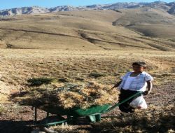 ELİF HASANÇEBİ (İHA) - Tekman ilçesinde, yaşları 10 ila 15 arasında değişen üç kardeş, dağ eteklerinde geven toplayarak kışa hazırlanıyorlar.