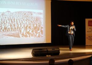 Sarıkamış Şehitleri’ni Anma Yürüşü’nün 100. Yılının yankılarının sürdüğü bugünlerde yeni bir heyecanın arifesine geldi. Çanakkale Şehitleri’nin Anma Programı’nın 100. Yılı da büyük bir katılımla gerçekleşecek. Bunun için100.Yılında her ilde her dilde Çanakkale projesi öncesinde Erzurum’da da konferans verildi. Gençlik ve Spor Bakanlığı tarafından organize edilecek etiklik hakkında Proje Koordinatörü Enes Güney, Erzurum Büyükşehir Belediyesi Kültür Merkezi’nde bir konferans verdi. Gençleri Osmanlı arşivinden çıkardığı değerli fotoğraflarla bilgilendiren Güney, gençlerin geleceğini daha iyi inşa etmeleri için Çanakkale Zaferiyle ilgili bilgiler verdi.