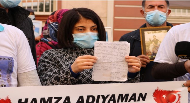 Hamza’nın bu görüşmede bu kişiye PKK tarafından kaçırıldığını, ve ‘ben kaçırıldığım gün, kaçırıldığım yerde arabada ağzım bantlı, ellerim bağlıyken annemi orada gördüm’ dediğini söyleyen abla Adıyaman, “Anneme oğlun suya düştü dediklerinde ben oradaydım. Ancak beni alıp götürdüler, ben seslenemedim, bağıramadım’ demiş. Üç, biz kardeşimin nehre düşmediğini, kaçırıldığını öğrendikten sonra tehdit almaya başladık. Ne gariptir ki hiçbir tehdit almazken kardeşimizin kaçırıldığını öğrendikten ve bu işin peşinde düştükten sonra tehdit almaya başladık. Eğer kardeşimiz kaçırılmadıysa biz bu arayışta neden tehdit ediliyoruz. Dört, bunu belirtmeliyim ki, dün kardeşim öldüyse bir cesedinin ve mezarının olması gerekiyor. Ceset yoksa ölüm yoktur. Ölüm varsa ceset vardır. Beş, elimdeki bu mektup 2017 yılında evimizin balkonuna bırakıldı. Kardeşimin yazdığı bu mektup eğer doğruysa benim kardeşim yaşıyor. Eğer doğru değilse de bu mektubu kardeşim yazmadıysa kurgu ise neden böyle bir mektup gönderilmiş. Normal bir ölüm vakasından böyle şeyler olmaz” şeklinde konuştu.