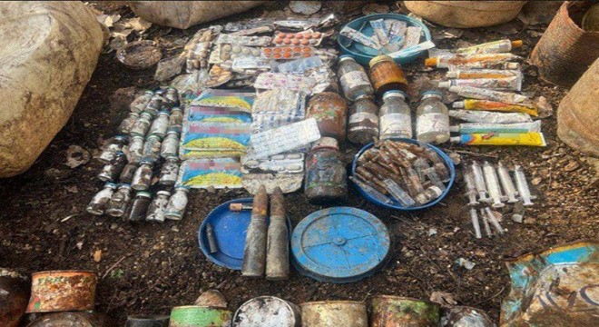 Muş'ta terör örgütü PKK'ya yönelik gerçekleştirilen operasyonda toprağa gömülü yaşam malzemeleri ve mühimmat ele geçirildi.