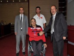 Geçtiğimiz ay İngiltere’nin başkenti Londra'da düzenlenen 2012 Londra Paralimpik Oyunları'nda okçulukta bronz madalya kazanan Doğan Hancı İl Genel Meclisi’nin bugünkü oturumuna konuk oldu. İl Genel Meclisi Başkanı Bülent Taşkesenli milli sporcuyu başarısından dolayı kutlayarak cumhuriyet altını hediye etti.