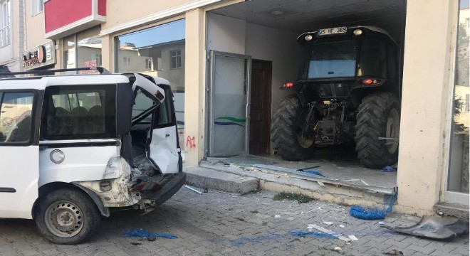 Horasan ilçesi Recep Tayyip Erdoğan Mahallesinde beş katlı apartmanın alt katında bulunan işyerinden içeri dalan traktör paniğe neden oldu.
