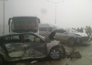Edinilen bilgiye göre; Erzurum’un Köprüköy- Horasan karayolu üzerinde aşırı sis nedeniyle meydana gelen zincirleme trafik kazasında 10 araç birbirine girdi. Sis nedeniyle görüş mesafesinin düştüğü yolda araç sürücüleri ilerlemekte güçlük çekerken bazı araç sürücülerinin kontrollerini kaybetmesiyle araçlar birbirine girdi. Kazada 4 kişi yaralandı. Yaralanan şahıslar olay yerine gelen ambulansla hastaneye kaldırılarak tedavi altına alındı. 10 aracın birbirine girdiği zincirleme trafik kazasının meydana geldiği Köprüköy- Horasan karayolu kaza sonrası yarım saat trafiğe kapandı.