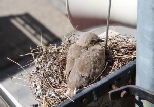 Atatürk Caddesindeki elektrik direklerinden birine bağlı olan ses yayın cihazının üzerine yuva yapan kumrunun yavrusu aşağı düştü. Caddeye düşen savunmasız kumru yavrusunu fark eden cadde esnafı durumu hemen itfaiyeye haber verdi. İhbar üzerine yardıma gelen Büyükşehir Belediyesi itfaiye görevlileri kaldırım kenarına düşen yavru kumruyu dikkatli bir şekilde aldı. Elindeki kumru yavrusu ile itfaiye aracının merdivenine çıkan görevli, yine oldukça hassas bir şekilde yavruyu yuvasına bıraktı.