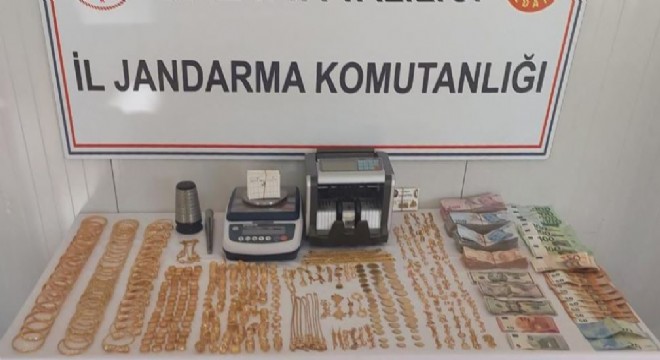 Olay, Yeşilyurt ilçesi Fatih Mahallesi’nde bulunan bir konteyner kentte meydana geldi. Edinilen bilgilere göre konteyner kentte bir kişi tarafından vatandaşlara altın satışı yapıldığı bilgisi üzerine harekete geçen İl Jandarma Komutanlığı’na bağlı ekipler konteynerde kaldığı tespit edilen şahsın yakalanması için çalışma başlattı. Yapılan çalışmalarda şahsın ikamet ettiği konteyner ve eklentilerinde arama yapan ekipler 417 adet çeşitli ebatlarda 2.897 gram 21 ayar altın, satışlarda elde edildiği değerlendirilen 128 bin 800 TL 1 adet para sayma makinesi, 1 adet Hassas terazi, 1 adet bilezik ölçme aleti, 1 adet yüzük ölçme aleti ele geçirdi.