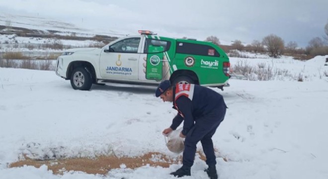Kar yağışının etkili olduğu Erzurum’da Jandarma ekipleri yaban hayatı unutmadı.