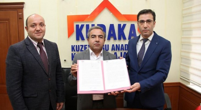 Kuzeydoğu Anadolu Kalkınma Ajansı hizmet binasında gerçekleşen imza törenine, KUDAKA Genel Sekreteri Oktay Güven ve Oltu Organize Sanayi Bölgesi Yönetim Kurulu üyesi Ümit Çelebi katıldı.