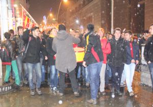 Erzurumlular soğuk ve kar yağışı altında Galatasaray’ın Şampiyonlar Ligi'nde grubunu 2. sırada tamamlayarak 2. tura yükselişini coşkuyla kutladı.