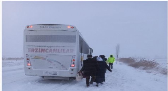 Erzincan’ın Tercan ilçesinde kara saplanarak hareket kabiliyetinden mahrum kalan otobüsteki yolcular kurtarıldı.