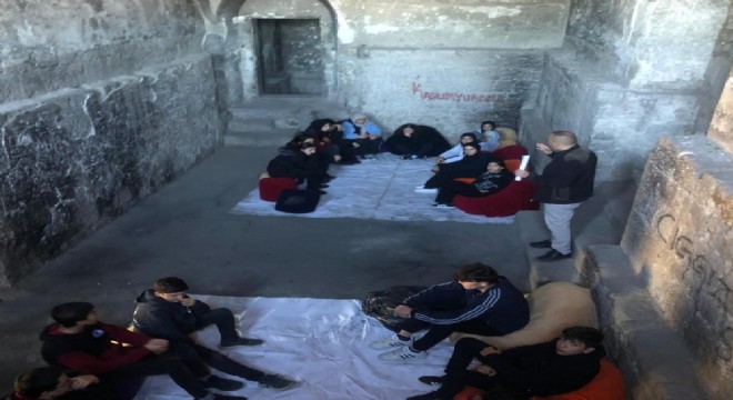 Erzurum Gençlik ve Spor İl Müdürlüğü Palandöken Gençlik Merkezi ‘Tabya’da Tarih’ projesi kapsamında lise öğrencilerinin Kiremitlik Tabya’da tarih dersi işlemelerini sağladı.
