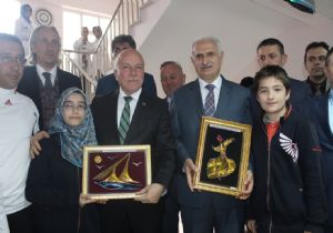 Öte yandan Erzurum Büyükşehir Belediye Başkanı Mehmet Sekmen ve Atatürk Üniversitesi Rektörü Prof. Dr. Hikmet Koçak öğrencilerin yapmış olduğu resim sergisini gezdiler.