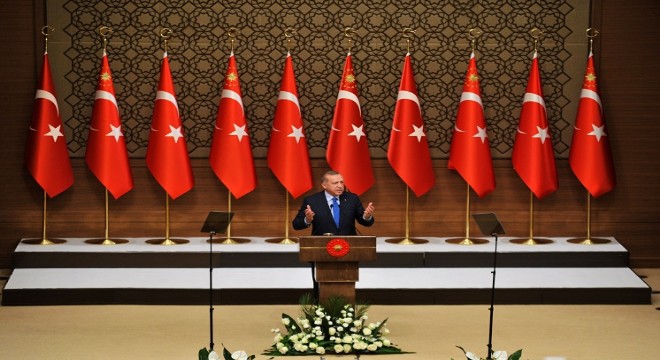 Tek tipçiliği, tek sesliliği dayatan totaliter rejimlerde sanatın layıkıyla neşvünema bulmasının mümkün olamayacağını söyleyen Erdoğan, “Ülkemize baktığımızda gördüğümüz şudur; Türkiye’nin yeni Mehmet Akiflere, Tanpınarlara, Necip Fazıllara, Nazım Hikmetlere, Arif Nihat Asyalara, Kemal Tahirlere ihtiyacı bulunuyor. Aynı şekilde müzikte yeni Dede Efendiler, Itriler, Hacı Arif Beyler, Aşık Veyseller, Muzaffer Sarıcaözenler, Neşet Ertaşlar yetiştirmeden özgünlüğümüzü koruyamayız. Mimar Sinan gibi kendi alanında asırlarca devam edecek ekoller oluşturacak mimarlar yetiştirmeliyiz. Ömrüne 800’e yakın projeyi sığdıran bir Mimar Sinan. Bunları da kaçak yapılar değil, siyasetçiyim gecekondu ifadesini kullanmak zor, ama hiç olmazsa kaçak yapı diyelim, böyle bir durum var. Diğer alanlarda da durum aynı. Önümüzdeki sürecin ülkemiz ve milletimiz için buradaki kıymetli kültür sanat insanlarımızın desteği ve gayretleri ile yeni bir yükseliş dönemine dönüşeceğine inanıyorum. Kültür ve sanat tabiatın gereği sivildir, özgürdür, vesayet kabul etmeyecek bir karakterdedir. Tek tipçiliği, tek sesliliği dayatan totaliter rejimlerde sanatın layıkıyla neşvünema bulması bu sebeple pek mümkün olmaz. Aynı şekilde toplumların kutsallarını, inançlarını küçümseyen, hafife alan, ideolojik siparişlere göre köreltmeye çalışan kişinin yaptığı işin adı kültür veya sanat değildir. Esasen bu tarz işlere tevessül edenlerin isimleri ve eserleri tarihin tozlu raflarında kaybolup gitmiştir” ifadelerini kullandı.