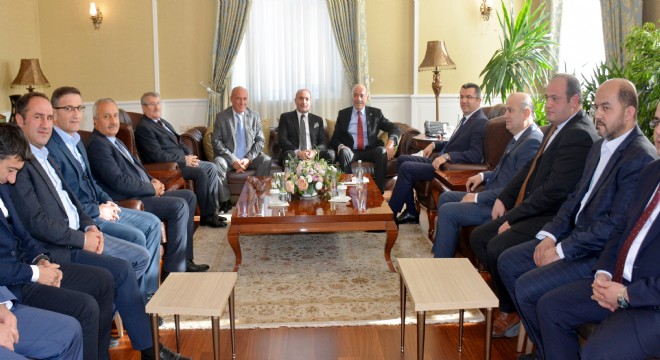 Vali Okay Memiş’in makamında gerçekleşen ziyarete, ETSO Yönetim Kurulu Başkanı Lütfü Yücelik’in yanı sıra Meclis Başkanı Saim Özakalın, Yönetim Kurulu Başkan Vekilleri Muharrem Özdemir ve Hüseyin Polat ile Yönetim Kurulu üyeleri; Şevket Demir, Hamit Aydoğdu, Engin Çimen, Murat Turan ve Ömer Faruk Yıldırım katıldı. Vali Memiş ziyarette ETSO yöneticileriyle tek tek tanıştı. Vali Okay Memiş’e yeni görevinde başarı dileyen ETSO Yönetim Kurulu Başkanı Lütfü Yücelik, Gümüşhane Valiliği sırasında tanıştıkları Vali Memiş’in Erzurum’da da başarılı çalışmalara imza atacağına inandıklarını söyledi. Erzurum Ticaret ve Sanayi Odası olarak şehrin gelişmesi, kalkınması ve her yönüyle hak ettiği konuma kavuşması için yapılacak her türlü çabaya sonuna kadar destek vereceklerini kaydeden Başkan Yücelik, şimdiye kadar olduğu gibi bundan sonra da kamu kurumları arasındaki iş ve güç birliğine verdikleri önemi sürdüreceklerini belirtti.