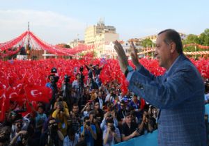 Konuşmasında, “Bu vatan toprağın kara bağrında, sıradağlar gibi duranlarındır; bir tarih boyunca, onun uğrunda, kendini tarihe verenlerindir… Tutuşup kül olan ocaklarından, şahlanıp: köpüren ırmaklarından, hudutlarda gaza bayraklarından, alnına ışık vuranlarındır…” dizelerine yer veren Cumhurbaşkanı Erdoğan, “Biz bu toprağın kara bağrında sıradağlar gibi duran şehitlerimizin aziz hatırasına sahip çıkarak ülkemizi güçlendirmeye, kardeşlerimize el uzatmaya devam edeceğiz. Üstat Necip Fazıl ne diyor? ‘Tomurcuk derdinde olmayan ağaç, odundur.’ Biz, geçtiğimiz 12 yılda Türkiye’yi sadece tomurcuklandırmakla kalmadık, meyveye de durdurduk. Hatta hasadını yavaş yavaş almaya da başladık. 230 milyar dolardan aldığımız millî geliri 800 milyar dolara çıkardık. 2023 yılında bu rakamı 2 trilyon dolara çıkarmayı hedefliyoruz. Yeni Türkiye, inşallah, tam anlamıyla bir harman zamanı olacak. İstanbul Boğazı'ndaki üçüncü köprü inşaatının sürüyor. Marmaray'ın güneyinde, denizin altında Avrasya Tüneli yapılıyor. Bizim dedemiz Fatih, gemileri karadan yürüttü. Biz de onun izinden giderek, 'Dedemiz Fatih madem karadan yürüttü, biz de denizin altından yürütüyoruz' dedik. Ama bunun için Türkiye’nin yeni Anayasa, onunla birlikte başkanlık sistemine ihtiyacı var. 7 Haziran’da verdiğiniz her oy, yeni Türkiye’nin inşası yolunda bir tuğla vazifesi görecek. Bunun için bir olacağız, iri olacağız, diri olacağız, kardeş olacağız, hep birlikte Türkiye olacağız” dedi.