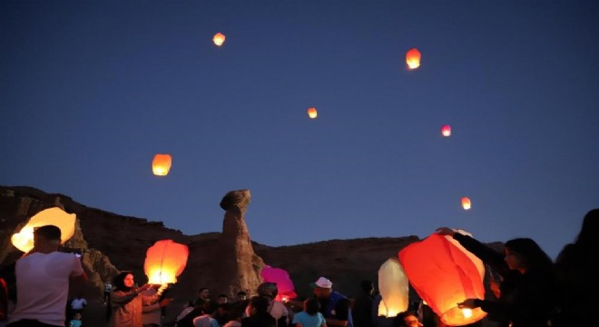 Kırmızı Peri Bacalarının gece güzelliğini izleyen gençler ve Üniversite öğrencileri, önce uzaya sonra hayallere daldı. Gençler, dilek balonlarını Peri Bacaları'nın büyüleyici atmosferinde gökyüzüne bıraktılar.