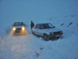Erzurum - Nenehatun rampalarında ise çok sayıda ağır tonajlı araç mahsur kaldı. Buzlanan yol ve şiddetli tipinin hakim olduğu mevkide araç kuyruğu oluştu.