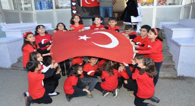 Okul bahçesinde düzenlenen programda, Okul Müdürü Yener Kütükçü’nün günün anlam ve önemini belirten konuşmasından sonra öğrenciler Cumhuriyet konulu şiirler okudu.