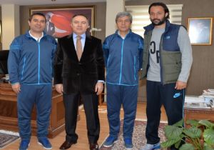 Vali Dr. Ahmet Altıparmak hafta sonu oynanacak zorlu maç öncesinde, Teknik Direktör Turhan Özyazanlar, Antrenör Muharrem Uzun ile takım kaptanı Mehmet Albayrak’ı makamında kabul etti.